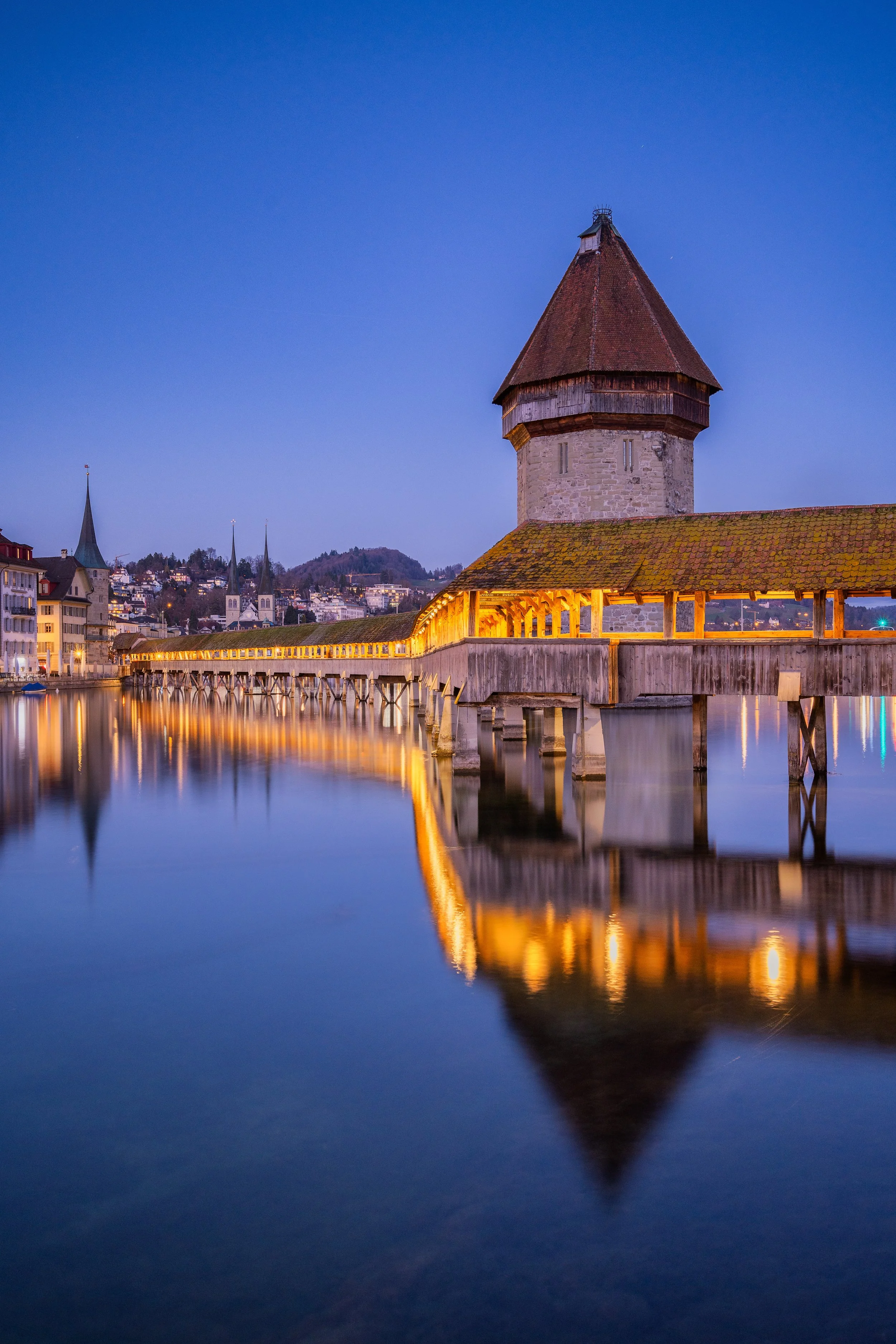 As you can see here, we have already reached the blue hour, where the colors of the buildings and other structures begin to show the perfect combination with the residual blue light in the sky. In these cases the amount of ambient light is very little, at this moment I set my camera to the desired aperture, the ISO to the minimum and to be able to make a long exposure that allows me to see a clean reflection of buildings in the water, I use the V-ND 1-5 stops filter, and I know I can change the settings of my camera really fast, because to go from 1 to 5 stops, I just need to rotate the front of the filter and set it in the stop I want.